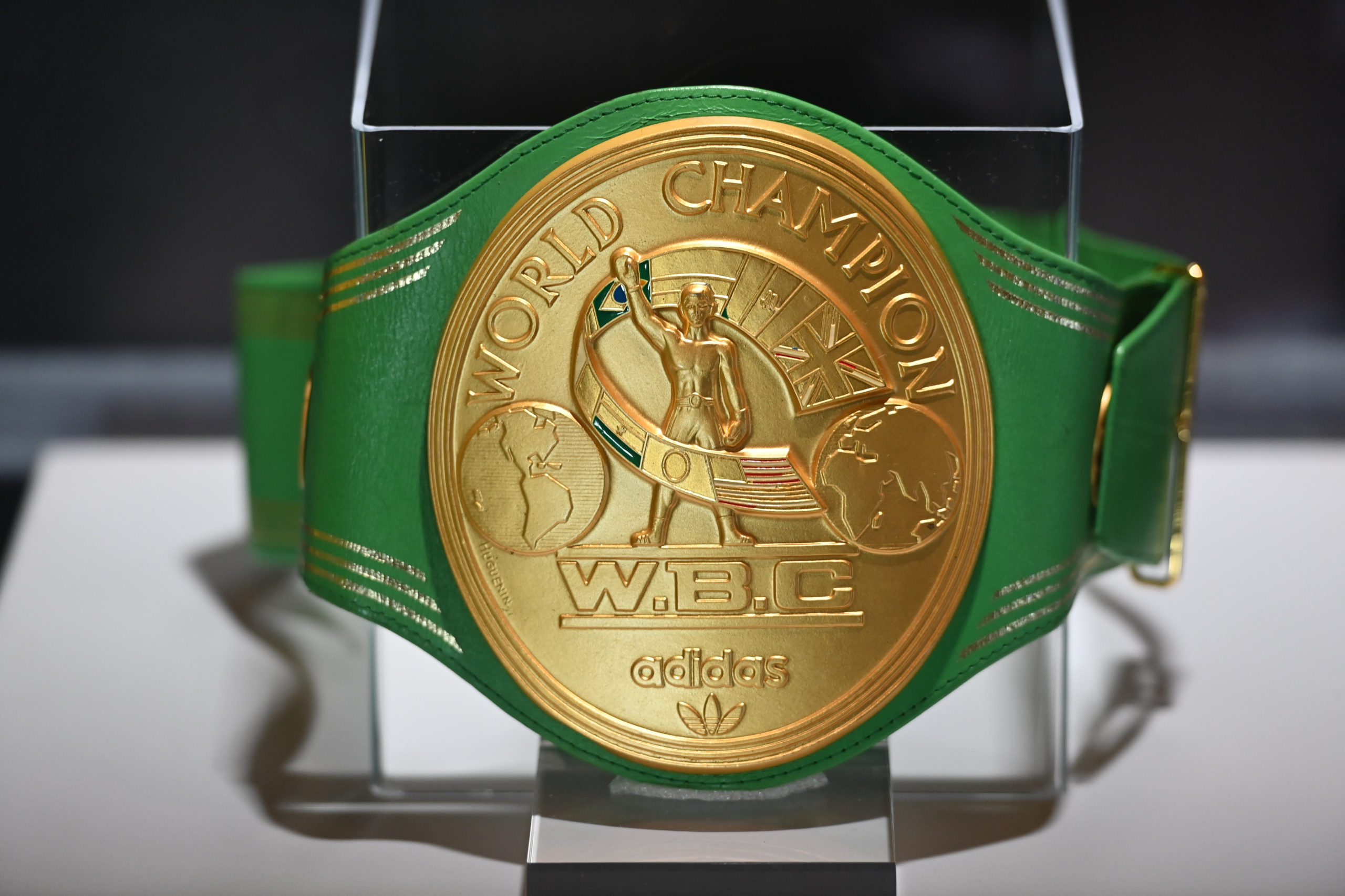 The Jim Irsay Collection & Exhibit includes items such as: Muhammad Ali’s 1974 “Rumble in the Jungle” championship belt, a 1953 Jackie Robinson bat, Sylvester Stallone’s original manuscript notes for the movie Rocky, and instruments by Eric Clapton, Elton John, and Kurt Cobain.